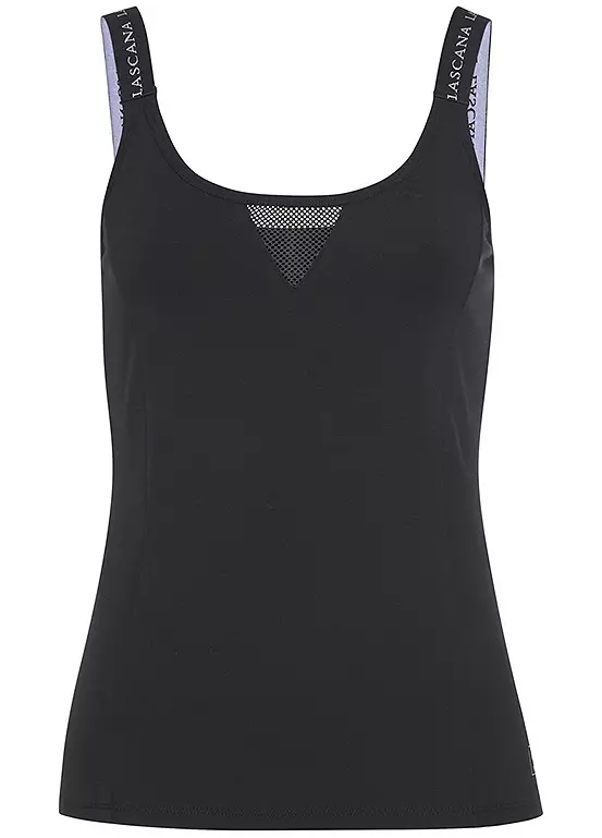 Sports top in a body-hugging fit with mesh inserts in the chest area that ensures a perfect fit, stretch straps and dividing seams. The brand lettering on the straps provide a fashionable touch.
