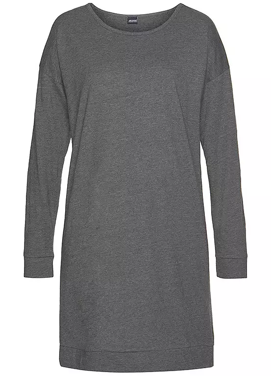 This casual, sporty nightshirt from Arizona is a real favourite for relaxed nights! Featuring lovely marl material, with soft single jersey fabric that feels super-soft against the skin to guarantee fabulously comfortable wear. Its stylish knee-length look is enhanced by a feminine crew neck and overcut shoulders, and is rounded off with elasticated trim on its sleeve cuffs and hems. This marl nightshirt promises you a wonderful night’s sleep!