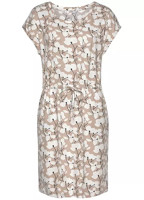 A trendy summer dress by Beachtime in an all-over floral print with short overcut sleeves and a round neckline. Made from soft jersey material, it features a drawstring at the waist and side pockets.
