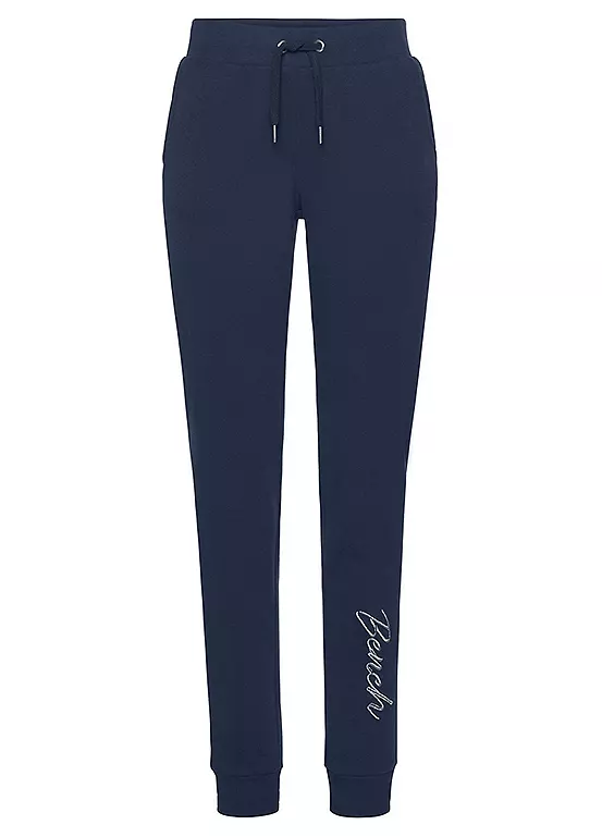 Casual sweat pants by Bench with shiny embroidered logo. They feature an elasticated waist with drawstring and handy side pockets. Made from pure cotton. Elasticated waist. Practical side pockets.