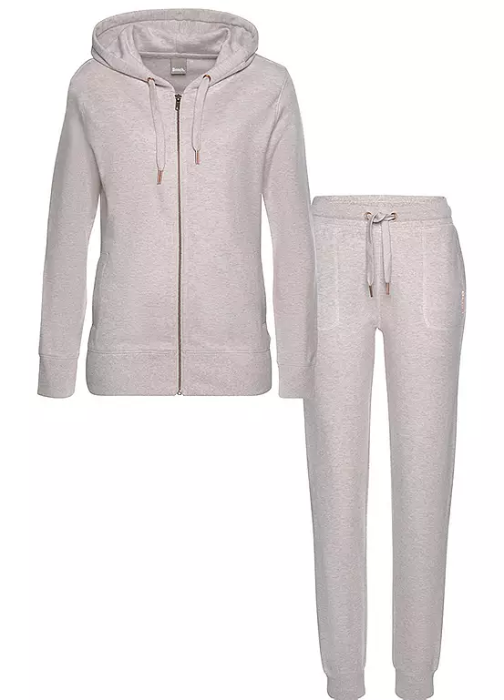 Cosy, lounge set consisting of a sweat jacket with pockets and trousers with elastic cuffs. Finished in a soft cotton blend. Pants with elastic cuffs. Subtle logo detail in a metallic effect.