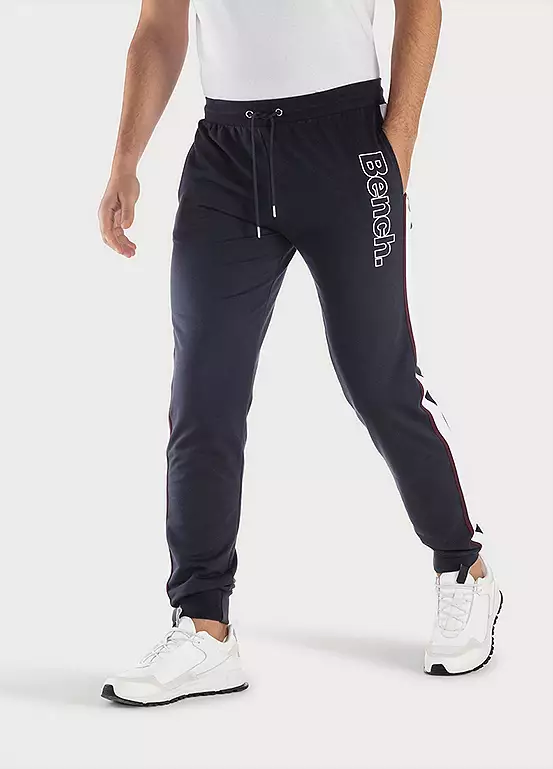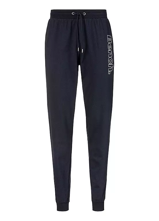Comfortable jogging bottoms for men with a casual cut and cuffs at the ankles. The vertical logo print on the left leg and the stripes on the side create a sporty look. With an individually adjustable stretch waistband and drawstring plus open side pockets. Made from soft sweat material with a high cotton content.