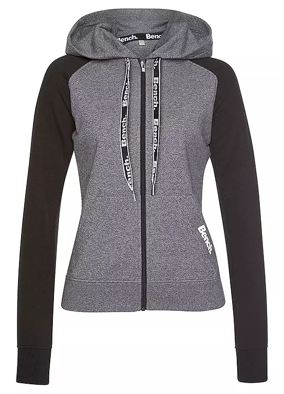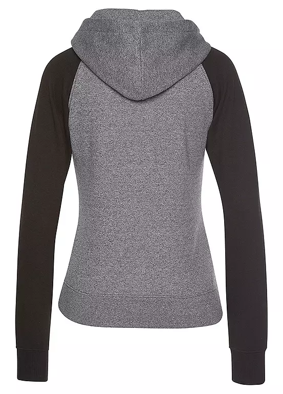 This sweat jacket is perfect for mild summer evenings. In a sporty design, the cotton material mix gives it a beautifully soft feel while a drawstring hood, full-length zip and practical kangaroo pocket complete the look. Finished with ribbed trim on the sleeve cuffs and hem that promises to keep in the warmth. The fashionable two-tone look and bold logo print makes this a stylish addition to your wardrobe.