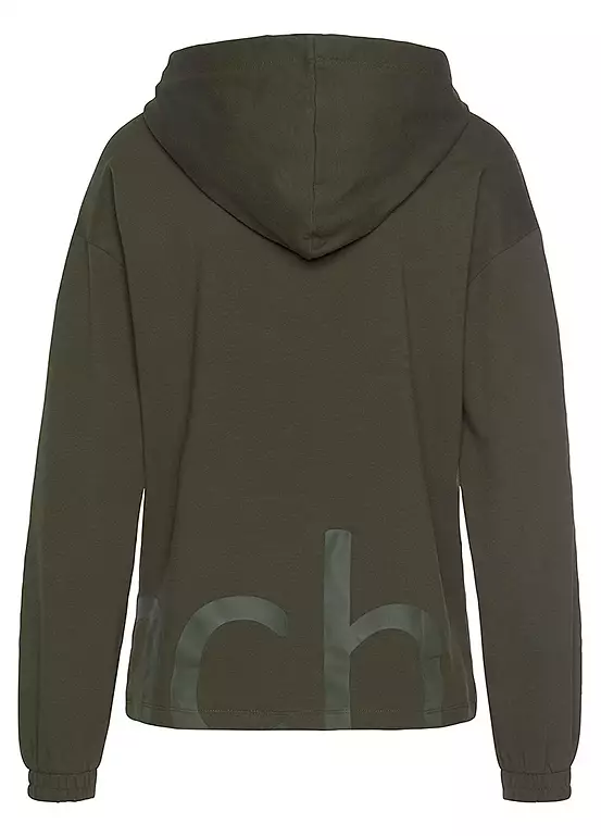 A fashionable hoodie that is wonderfully soft with an elastic cotton quality. Featuring a hood with drawstring, ruffled sleeve cuffs and quilting at the waist that ensures a good fit. Designed with a large but subtle tone-on-tone logo. Sweatshirt with zip and hood.