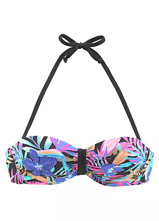 The tropical print on this Underwired Bandeau Bikini Top will certainly get you in the holiday mood. With padded cups, side boning and detachable straps. Made from a soft microfibre material.