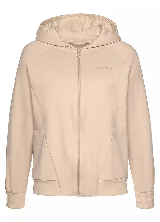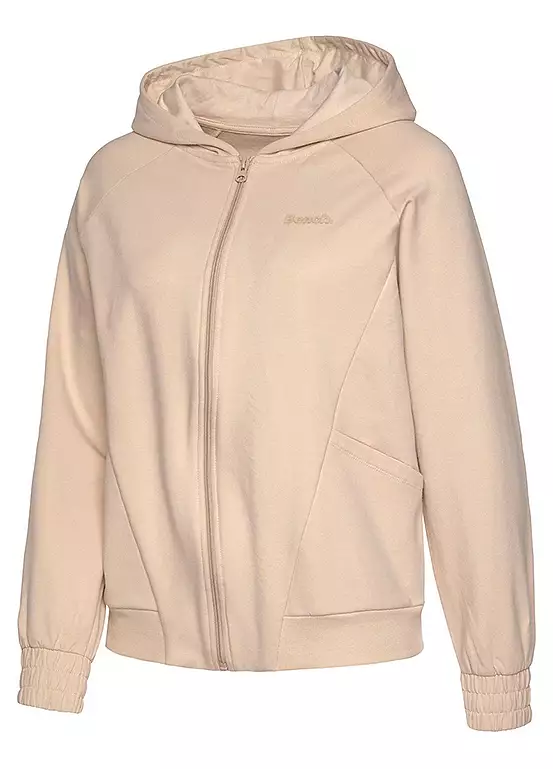 The cosy sweat jacket with a big hood and can be closed with a zipper. It has fashionable dividing seams and two large kangaroo pockets. Soft elastic sweat quality. With dividing seams & pockets.