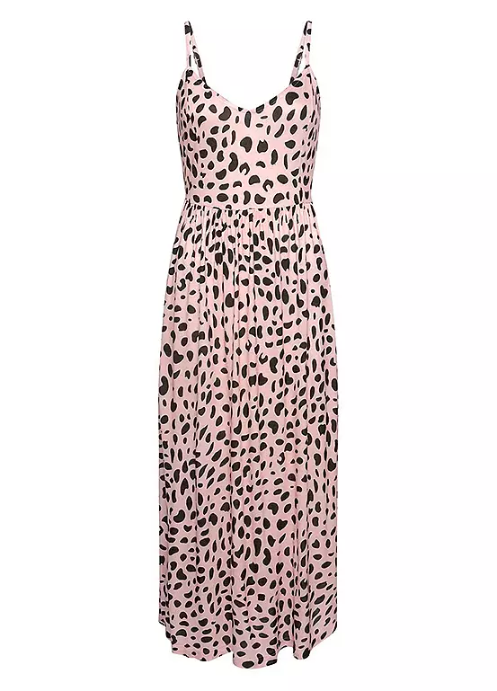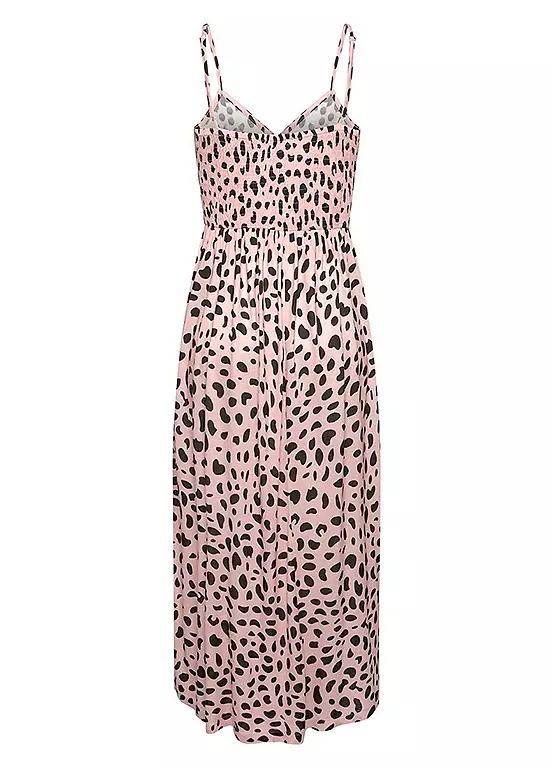A pretty midi dress in a stylish animal print featuring a feminine v-neckline and adjustable straps. The smocked insert on the back and the stretch at the waist are really comfortable.