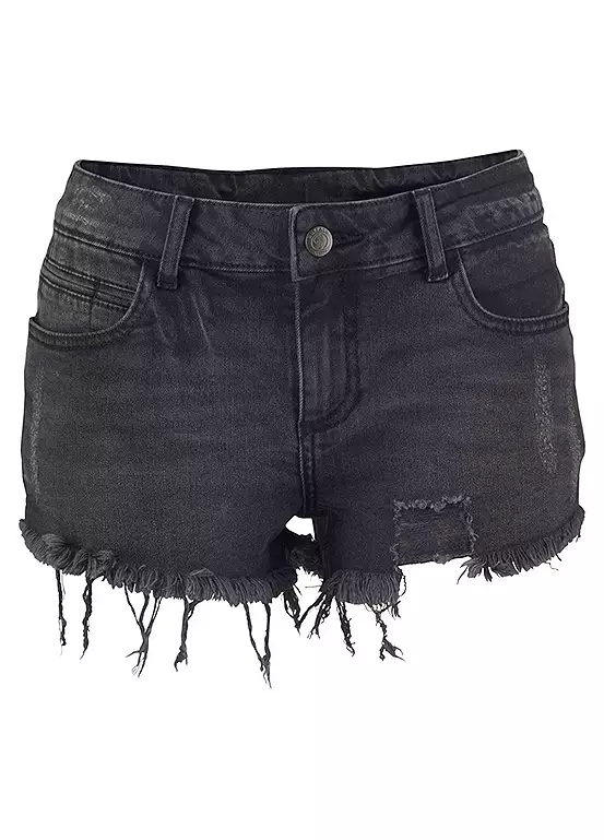 Sexy hot pants in a classic 5 pocket style featuring stylish used look with distressed effects, frayed hem and batik print, finished with a logo badge. A must-have for your summer wardrobe. 98% Cotton (Cotton made in Africa), 2% Elastane, Inside leg approx. 5 cm (2 in).