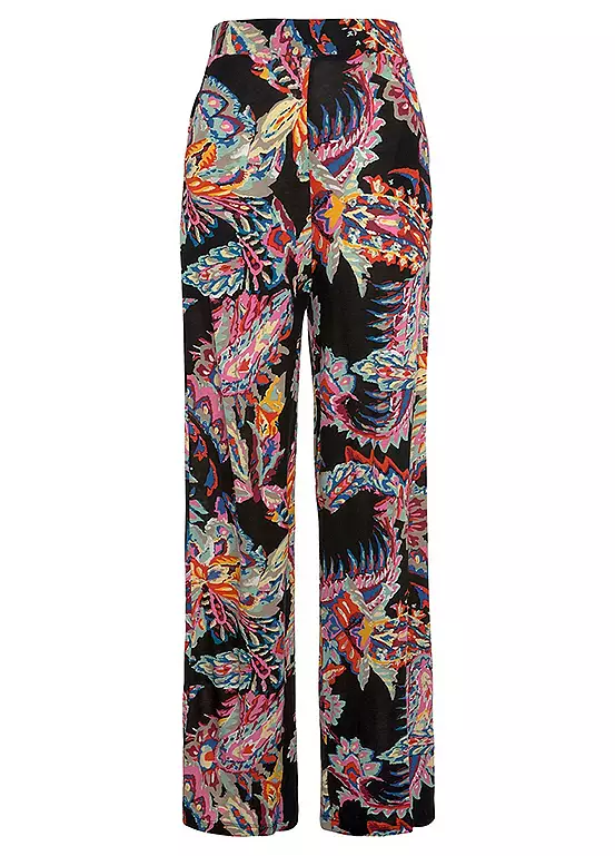 Soft palazzo trousers with an all-over holiday print that is unique to each item. With a straight hem and a fashionably wide cut.