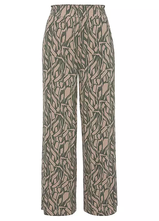Airy beach pants by Buffalo with an individual all-over print – each piece is unique. Made from comfortable jersey, they feature a wide trouser leg, a wide elasticated waistband with a subtle paperbag look and side pockets. Light summer trousers in a paperbag look. With side seam pockets. Machine washable. Outer: 80% Polyamide, 20% Elastane. Lining & Padding: 100% Polyester.