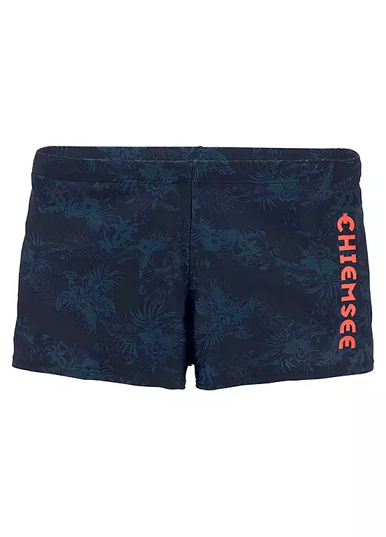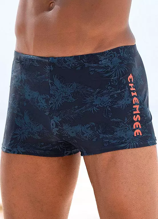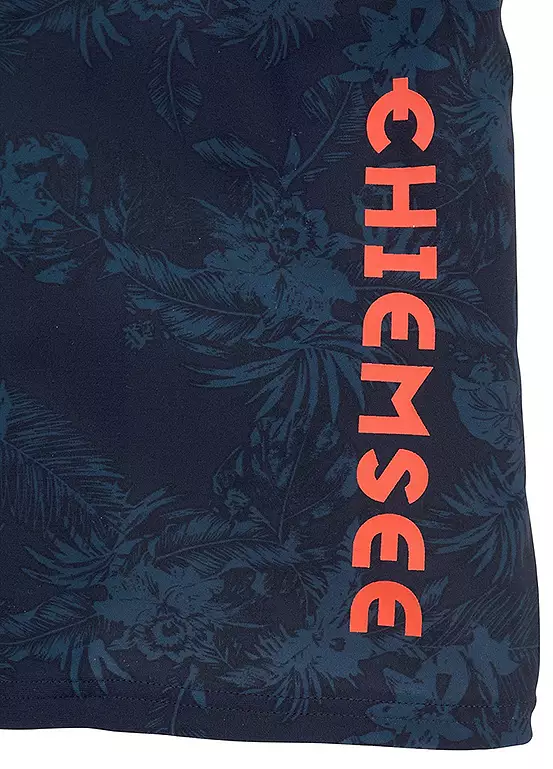 These boxer swim trunks from Chiemsee come in a stylish all-over print. The logo print at the side is clearly visible thanks to the contrasting look. The main focus of these shorts is comfort. And the figure-hugging swimming trunks with their tight fit and the drawstring on the inside definitely offer that. Logo print in a contrasting colour. Inner drawstring. Machine washable. 80% Polyamide, 20% Elastane. Lining: 100% Polyamide. Padding: 100% Polyester.