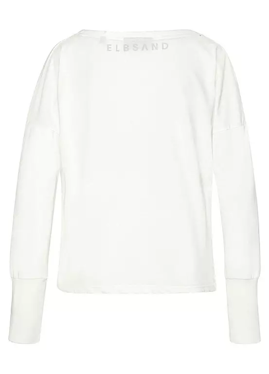 A long sleeved top with wide ribbed cuffs and soft jersey material. Finished with a sophisticated logo print on the front and at the back of the neck and dropped shoulders. Round neckline. Logo print on the front and neck. Dropped shoulders. Soft jersey fabric.