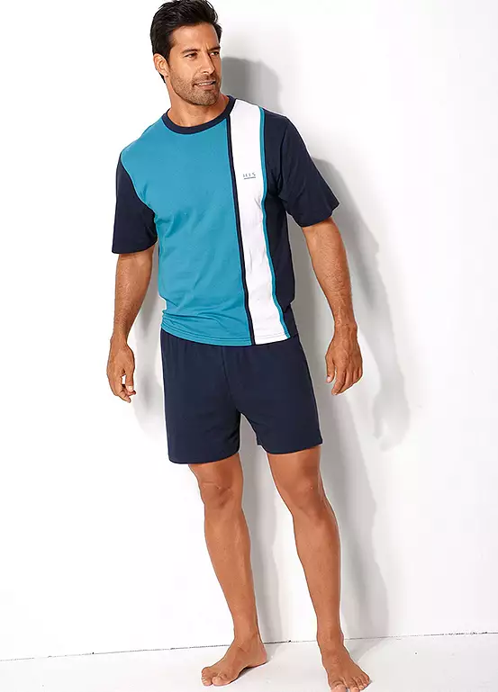 Short pyjamas are great for lounging around and making the most of the lazy evenings! Featuring a short sleeve top with round neckline and colour block panel to the front. Plus, matching plain shorts for ultimate bedtime comfort!