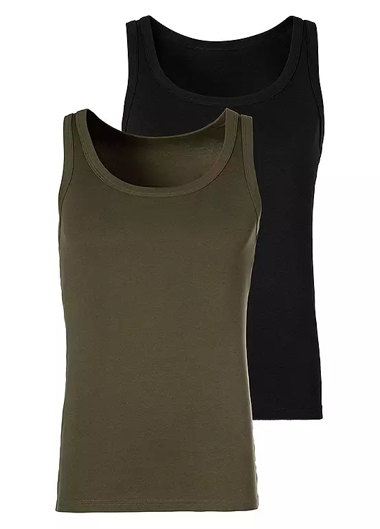 Pack of 2 tank tops in a fine rib quality, designed with flat edging on the neck and armholes. Made from soft cotton. Pack of 2.
