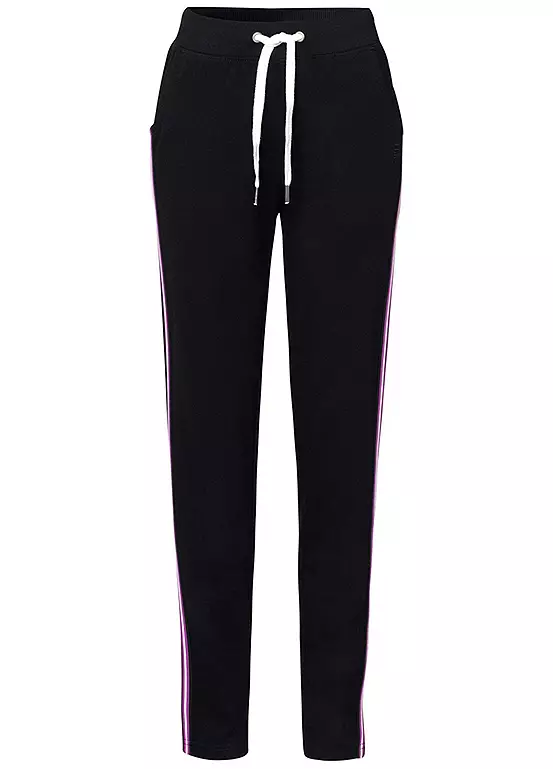 Perfect for sports or leisurewear, these stylish sweat pants feature an elasticated waistband with drawstring, as well as contrasting side tape down the legs.