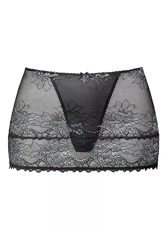 All-over lace mini skirt with integrated thong.