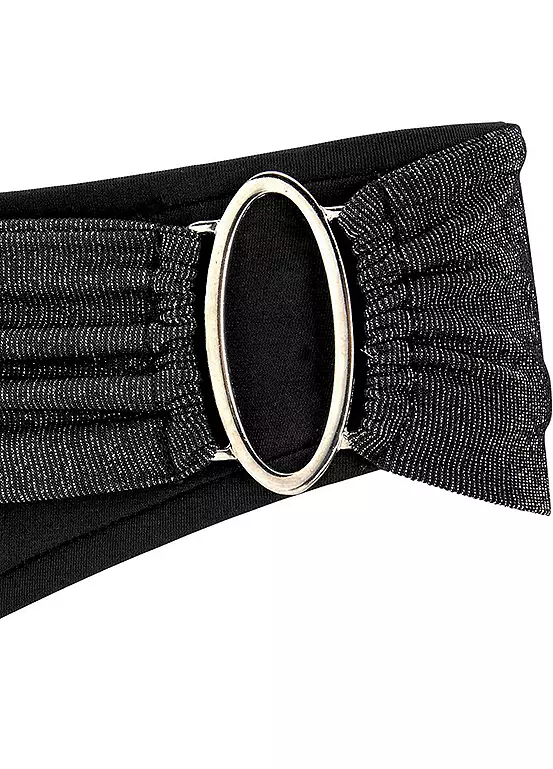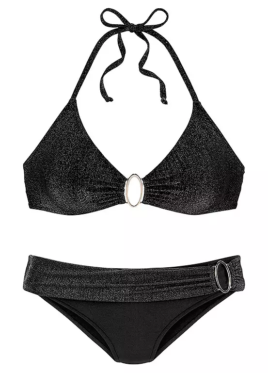 This triangle bikini is not only beautifully simple, but simply perfect. The triangular shape of the cups, which have removable pads, and the timeless briefs create a stylish look. Perfect for a beach holiday. Removable cups. To tie at the neck. Glittering decorative belt on the briefs.