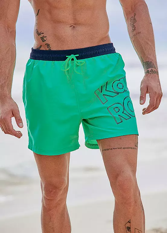 These swim shorts ensure a fashionable look for the beach. In a vibrant design and a relaxed fit, while a contrast waistband and logo print on the left thigh create attractive additional touches and the exterior drawcord can be easily adjusted to ensure plenty of freedom of movement. Further features include a practical inner lining with small pocket, rear pocket with Velcro and side pockets that offer plenty of space for any small essentials. Side length in size M approx. 39 cm (15 in)