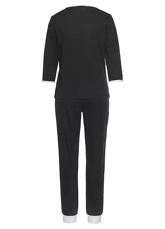 These pyjamas come with a top with a large motif print on the front. It also has a round neckline with a contrasting border and fashionable three-quarter sleeves. The pants are characterised by a colour-contrasting, elastic drawstring waistband. The comfortable quality of the two-piece guarantees you a lot of comfort and a high feel-good factor. Cult, cool and comfortable! Large motif print on the front. Round neckline with a contrasting border. Colour-contrasting pants & elastic drawstring waistband. Machine washable. 100% Cotton.
