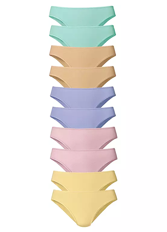 Classic cut bikini briefs come in a pack of 10. Made from a soft stretch cotton quality.