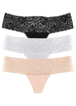 With pretty inserts made of jacquard lace on the sides and an integrated cotton gusset in the crotch ensures a comfortable fit. Pack of 3. Jacquard lace on the sides. Machine washable. 64% Polyester, 25% Polyamide, 11% Elastane.