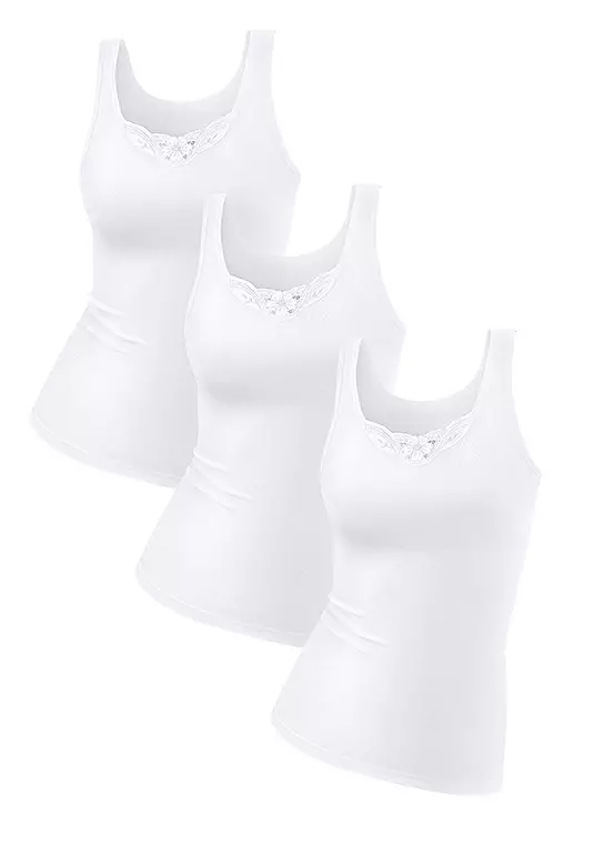 With lace inserts at the neckline, these fine-ribbed vests are simply gorgeous. In a pack of three, you can’t go wrong!