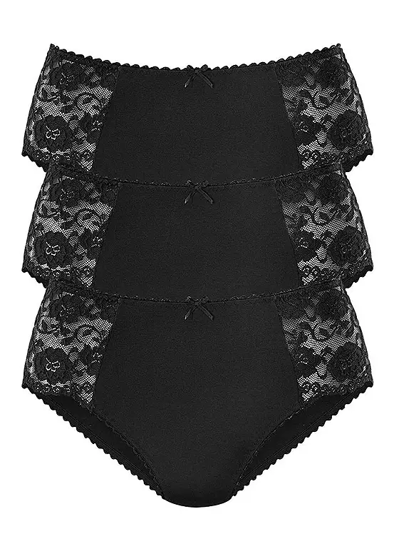 In a pack of three, these midi briefs come with delicate lace inserts at the side and a small decorative bow at the front. Add a feminine pinch to your daily underwear needs.