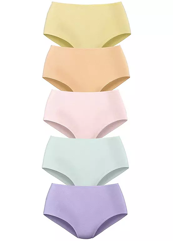 Practical pack of 5 high waist briefs, comfortable to wear and made from soft stretch cotton quality.