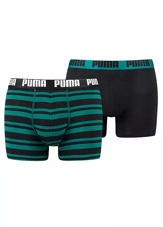 A pack of two boxers in a striped and plain design featuring a comfortable waistband with a brand logo print in a contrasting colour that catches the eye. Thanks to the elastic cotton material, they are wonderfully comfortable to wear. Pack of 2.