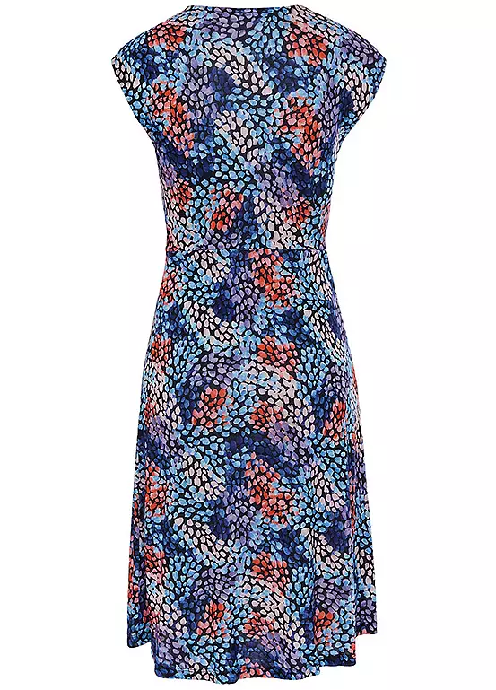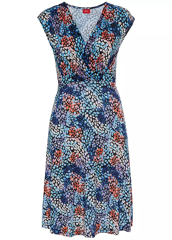 This dress from s.Oliver is a dress that pleases in every respect. On the one hand in the form of the striking all-over print, on the other hand with the deep v-neckline in a feminine wrap look. The elasticated waistband frames the flared hemline and the soft, flowing viscose fabric is wonderfully comfortable to wear. The dress not only looks attractive, it’s also wonderfully comfortable. V-neckline. Wrap look. Machine washable. 100% Viscose.