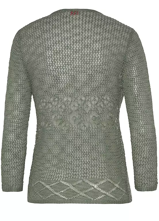 In an airy crochet look. Without clasp, worn open. Length about 54 cm. Lightweight quality made from 100% polyacrylic. Three-quarter sleeves. Openwork cardigan. Length approx. 54 cm.