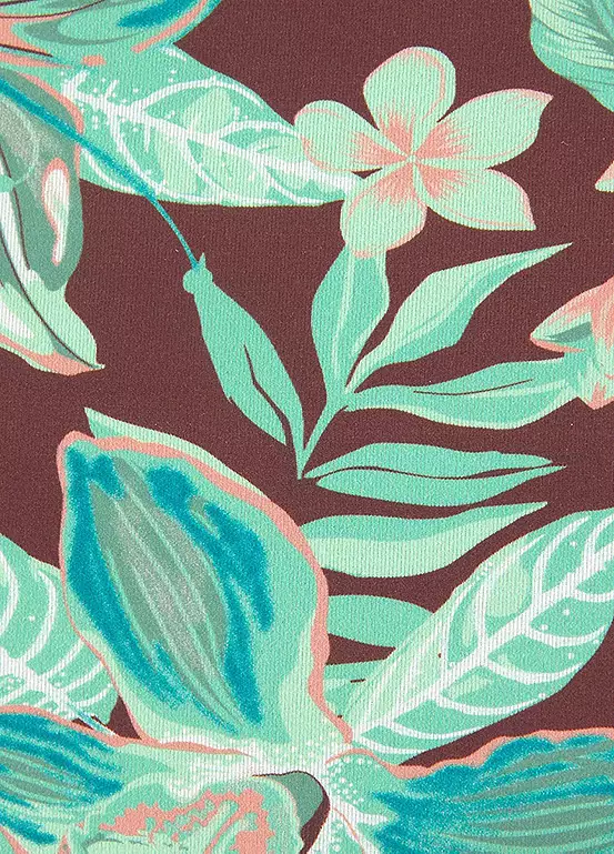 Wired bandeau bikini in an fashionable all-over floral pattern. Styled with padded cups and detachable neck holder with ties. The feminine pants are designed with decorative ruffles on the side. Floral design – each piece is unique. Padded cups. Pants with side ruffles. With recycled polyamide.