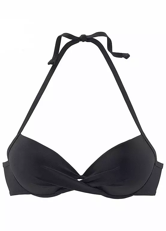 Pretty push-up bikini top that features a colourful floral print. With padded cups and integrated reinforcement for a breath-taking décolleté. Ties at the neck and fastens at the back.