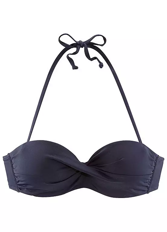 Pretty bandeau top that features a colourful floral print. With padded cups and integrated reinforcement for a gorgeous décolleté with effective support. With adjustable straps that tie at the nape. Top fastens at the back. From Cup sizes A to C with removable pads.