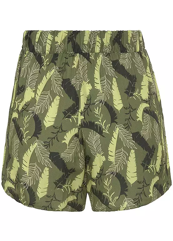 The all-over print on these shorts makes each piece unique and enhances your look in no time at all. The design is also defined by an extra-wide leg, a comfortable drawstring waistband with a tie belt and side pockets. The smooth woven fabric of the shorts also guarantees the best wearing comfort. Tropical print. Wide leg. Machine washable. 100% Viscose.