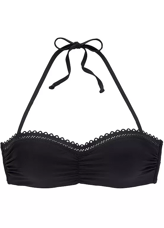 There is something that impresses with this top, the playful perforated lace that successfully decorates the upper edge of the bandeau top. The padded cups are additionally shaped by side rods and the soft microfibre quality is very comfortable to wear. Padded cups. Soft microfibre quality. Hand wash. Outer material: 84% Polyamide, 16% Elastane. Lining: 92% Polyester, 8% Elastane. Padding: 100% Polyester.