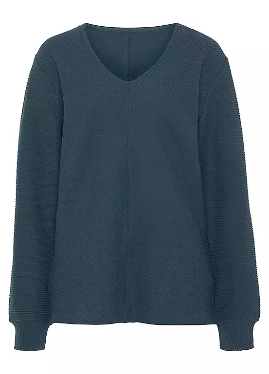 This sweatshirt from s.Oliver features v neck, long sleeves with dropped shoulders, in a loose basic fit and soft cotton fabric with a ribbed look. V-neck. Long sleeves with dropped shoulders.