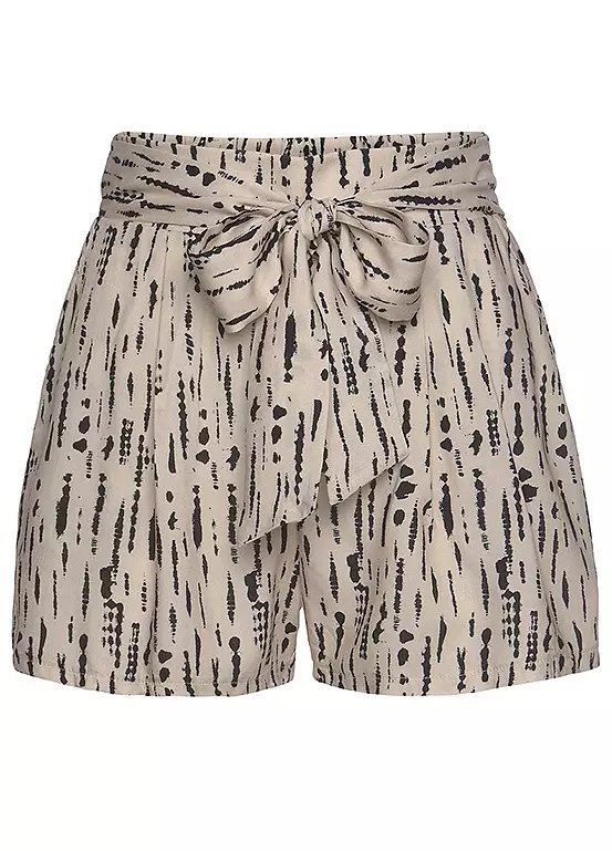 Trendy shorts with a high waistband, sewn-on tie belt with pockets on the sides. They provide a relaxed fit and are perfect for summer days thanks to the soft material. Slip waistband. Attached tie belt.