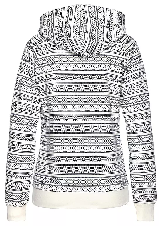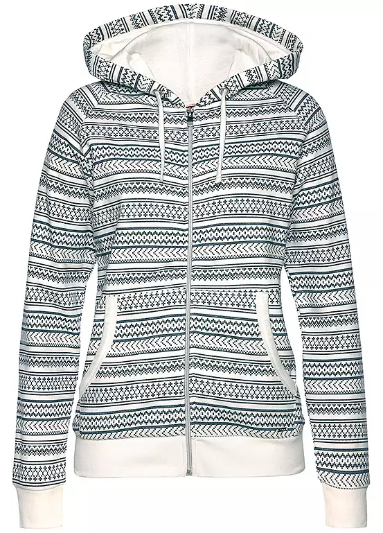 On cosy nights in or on cooler days out, this hooded sweat jumper is your warming companion. The upper material impresses with its pleasantly soft feel. In addition, the cosy hooded sweat jacket can convince with a practical kangaroo pocket, a casual fit and stretch rib cuffs. It is closed with a zip. Thanks to the Norwegian pattern, the sweat jacket will quickly become a soft favourite.