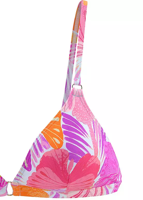 Triangle bikini top with an all-over print and removable soft cups. The practical straps can be adjusted and worn in three different ways. Made from easy-care material. With butterfly design – each piece is unique. 3 ways to wear: straight, crossed or halter neck. Removable soft cups.