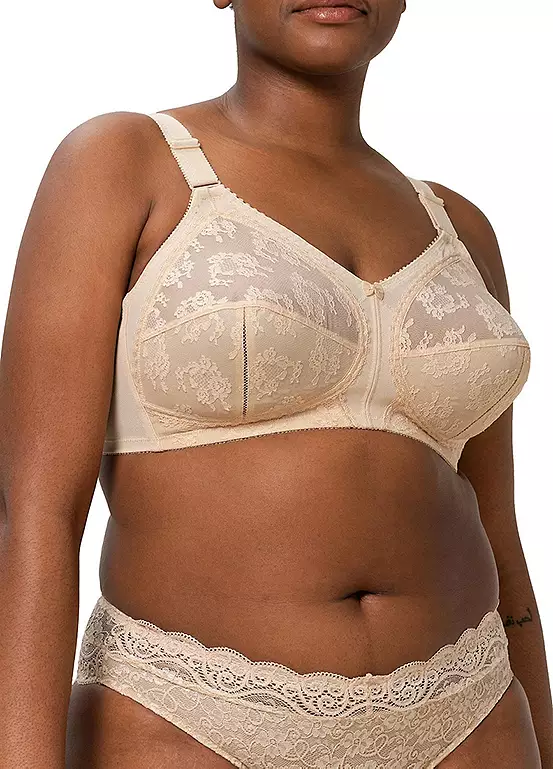 Pure classic elegance is what you get with this charming non-wired bra. Featuring non-elasticated lace cups, adjustable straps and a back fastening.