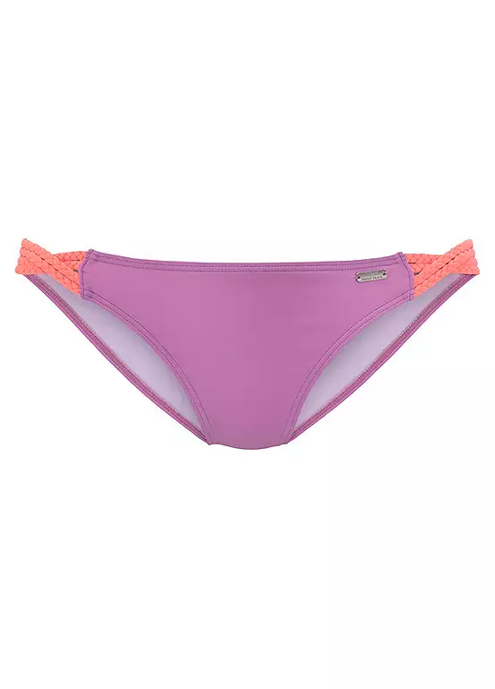 These bikini bottoms have a very special effect due to the beautiful contrasting design of the braided side straps, which give the swimwear that special visual kick. The tight fit guarantees a lot of suntan. And best of all: You can combine the bikini bottoms with different tops according to your taste. That’s really something, right? Side bands. Nice contrast design.