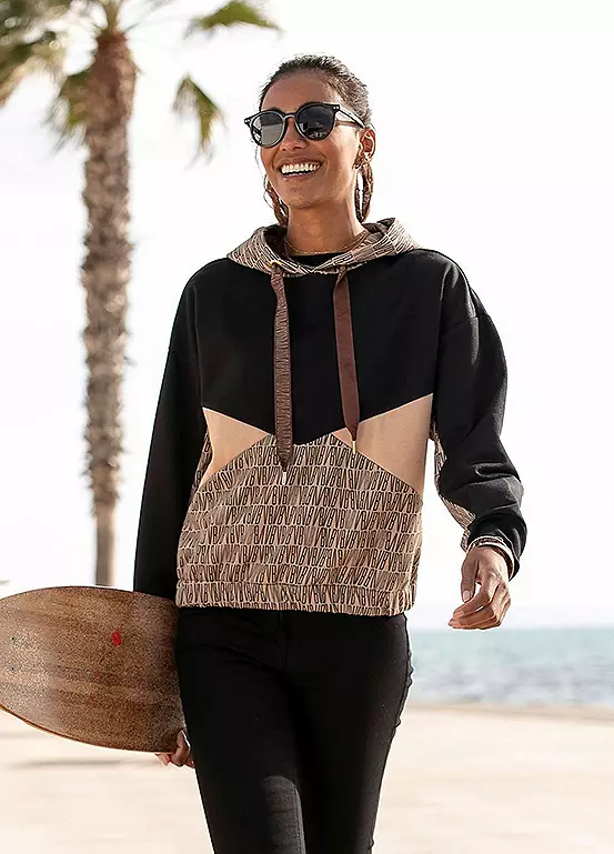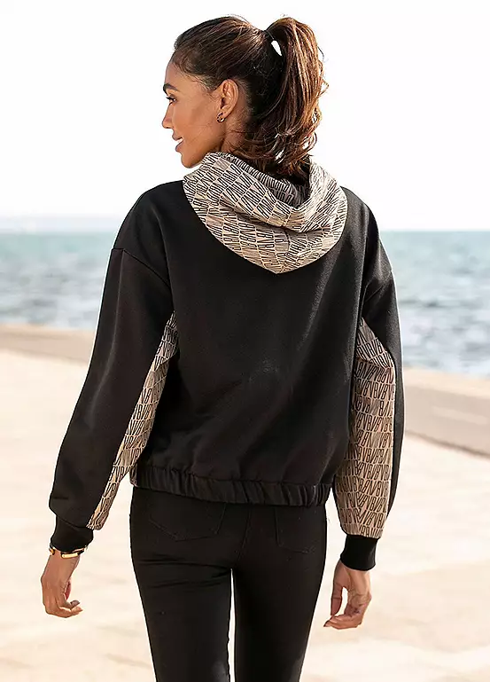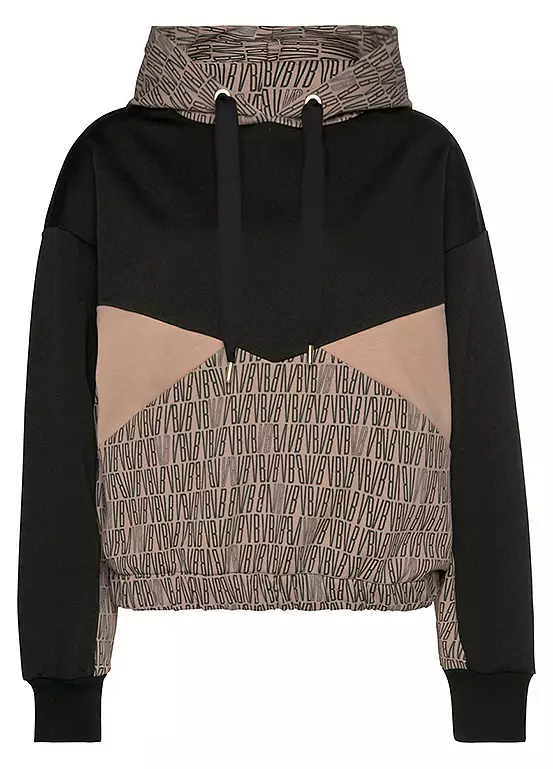 Colour block hoodie with a stylish monogram print and a lined hood with wide logo print drawstring. Finished with long sleeves with ribbed cuffs and an elasticated hem. Great for leisure wear, finished in a soft sweat fabric. Lined hood with logo print. Overcut sleeves.