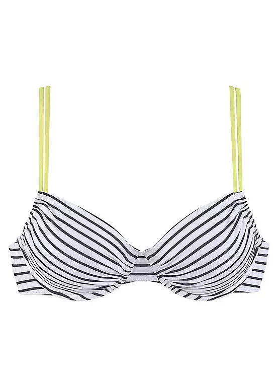 Beautiful underwired bikini in a striped look with contrasting straps. Removable soft cups ensure an individual décolleté, while the integrated underbust straps give your bust the support you need for the water. With the adjustable straps and the option to adjust the top at the side, it is easy for you to adapt this underwired top to your needs. Striped design with contrast straps. Removable soft cups.