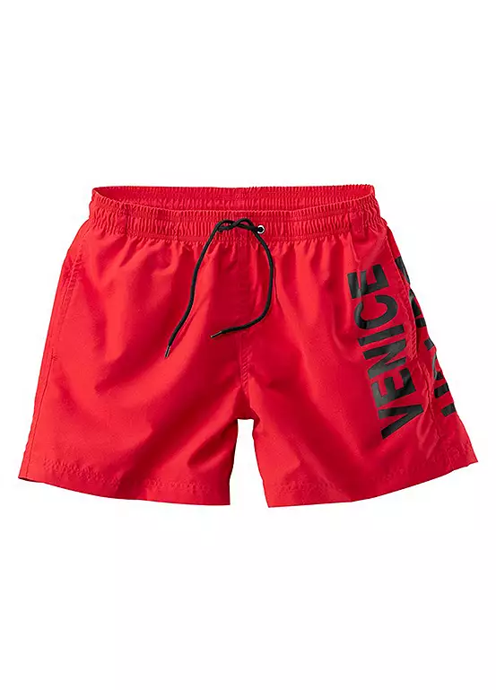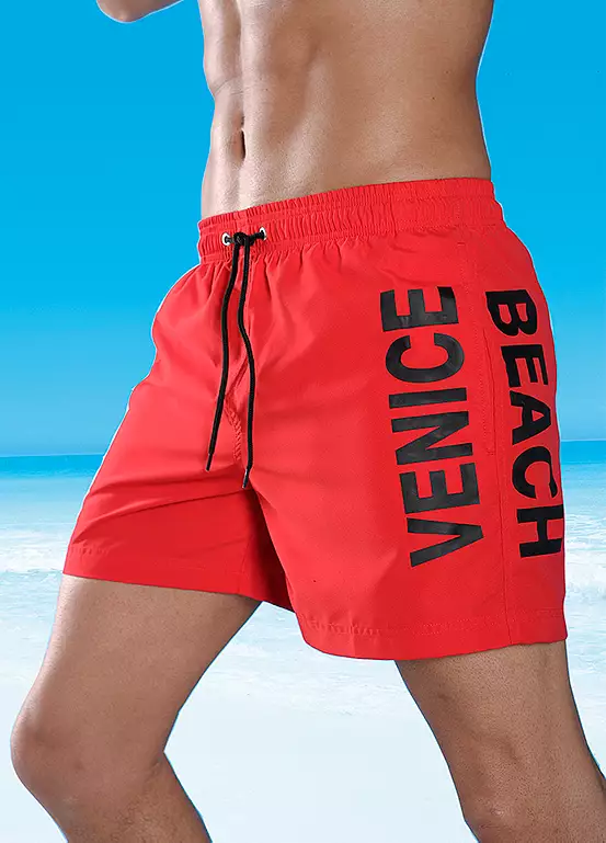 Comfortable swim shorts with large logo print on the side, inner slip, small inner pocket, elastic waistband with an adjustable fastening and side pockets.