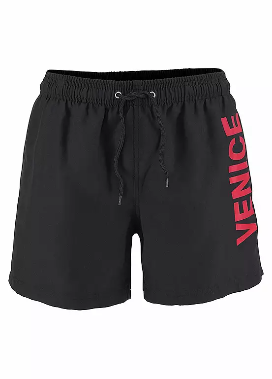 The trendy swim shorts cut a fine figure both on the beach and in the water, because the design with a large logo print on the leg is simply casual and sporty. The comfortable finish with inner slip allows for a comfortable fit and the inner pocket is a smart detail. The elastic waistband can be adjusted with a drawstring and cord, while side pockets hold your bits and pieces when you’re not in the water. Inner slip & inner pocket. With outer cord & side slip pocket. Side length approx. 39 cm in size M.