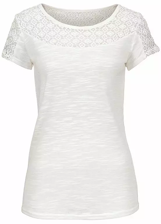 The seductive t-shirt enchants with a soft lace insert on the front and back neckline and on the short sleeves. This creates a great transparency effect, which makes the women’s shirt a wonderful key piece. Thanks to the excellent quality with linen content, the shirt has a pleasantly loose fit and beautifully flatters the feminine silhouette. Crocheted lace on the neckline & sleeves.