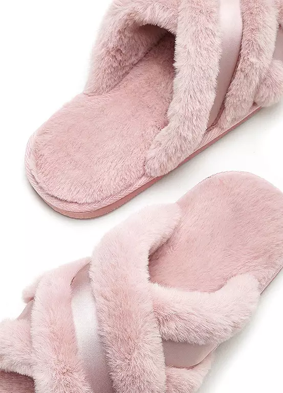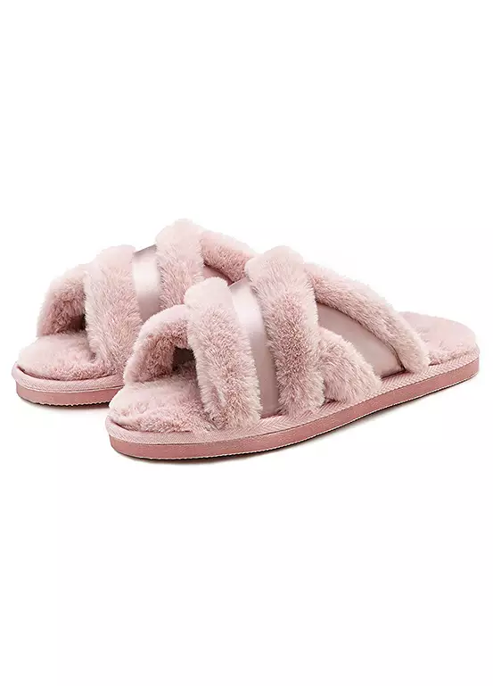 Vivance plush slippers provide a cosy chic look at home with their sophisticated cross straps and warm comfort. Perfect for lounging around, these slippers will keep your feet feeling warm and snug all day long. Get the perfect balance of style and comfort with Vivance. For a cosy chic look at home.