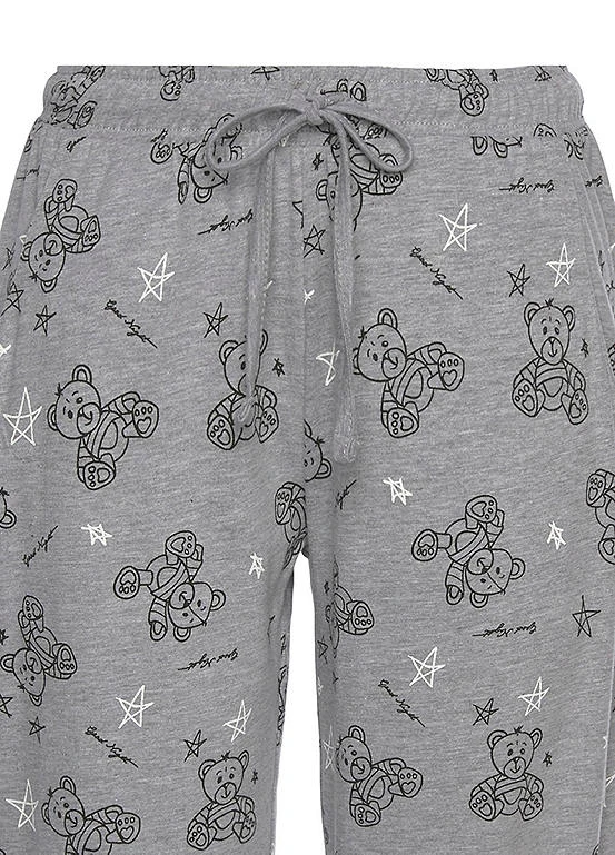 Made from soft single jersey cotton, these pyjamas comprise a long sleeve top with a bear print at the front and all-over printed bottoms with an elasticated drawstring waistband.