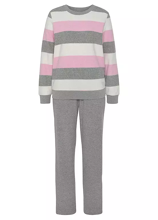 Get ready for some sweet dreams in these comfy pjs with yarn-dyed colour block stripes. Featuring a long sleeve top with ribbed cuffs on the crew neck, and sleeves and hem. The trousers have an elasticated waistband and straight leg, both made from a cotton blend and brushed on the inside for extra warmth and softness. Get snoozing in style! Pyjamas with yarn-dyed colour block stripes. Long sleeve top with ribbed cuffs on the crew neck, sleeves and hem. Made from a cotton blend and brushed on the inside.